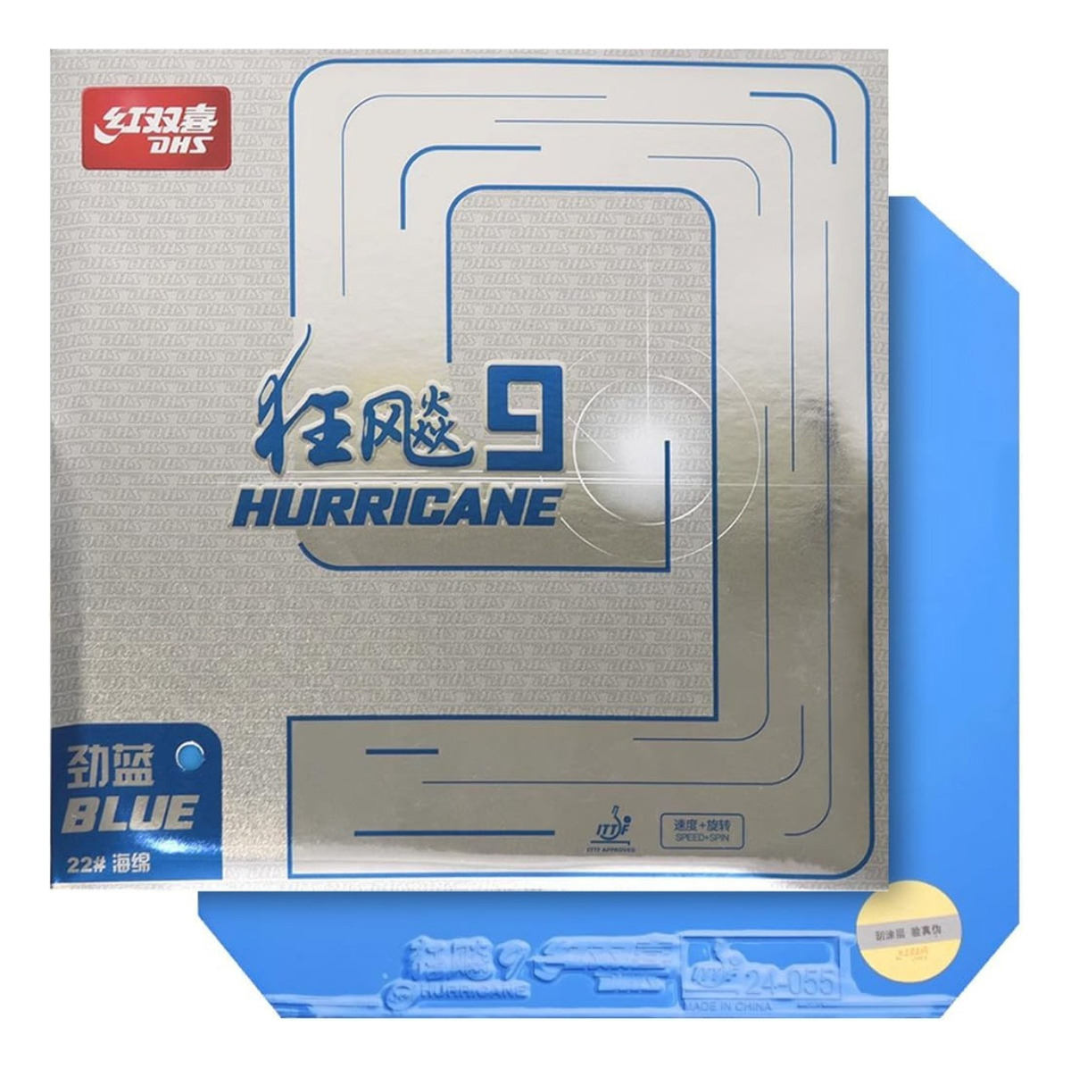 A borracha DHS HURRICANE 9 é uma borracha pegajosa chinesa clássica da série de borracha HURRICANE 9 e é de longe a mais potente e rápida desta série.