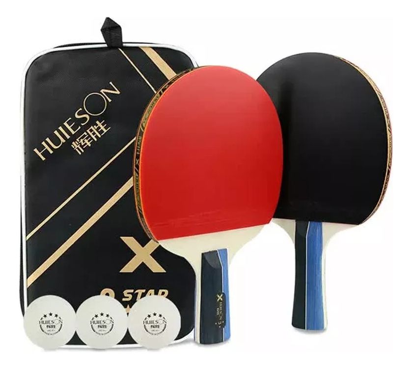 KIT 2x RAQUETES HUIESON X3 ESTRELAS + CAPA PROTEÇÃO + 3 BOLAS PING PONG TÊNIS DE MESA