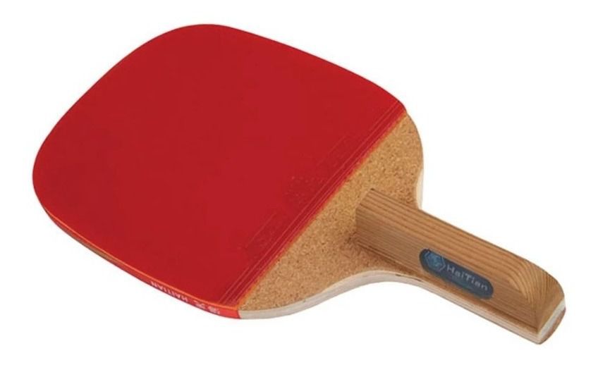 Raquete é feita de madeira e cortiça para uma melhor pegada, é coberta com borracha oficial de 2.0mm de espessura, gerando melhor aderência e efeito, além de sidetape na lateral da raquete para melhor acabamento.
